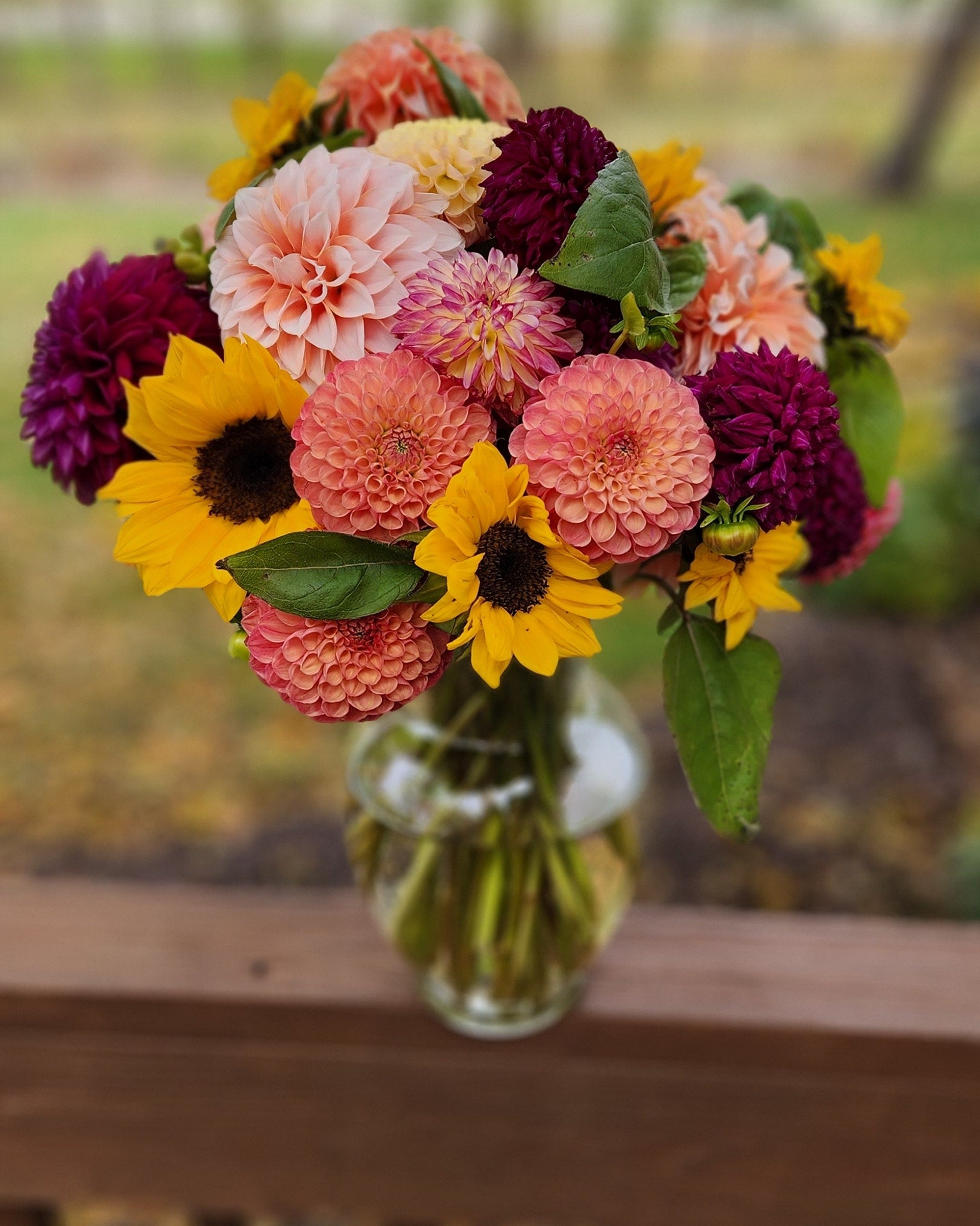 Our 4 Week FALL Bouquet Subscription will run in late August/early September, for a total of 4 bouquets. These bouquets will be made up of any flowers that may be blooming at the time, but will most definitely include DAHLIAS. They will contain roughly 12-15 stems and will fit nicely in a mason jar or similar size vase.