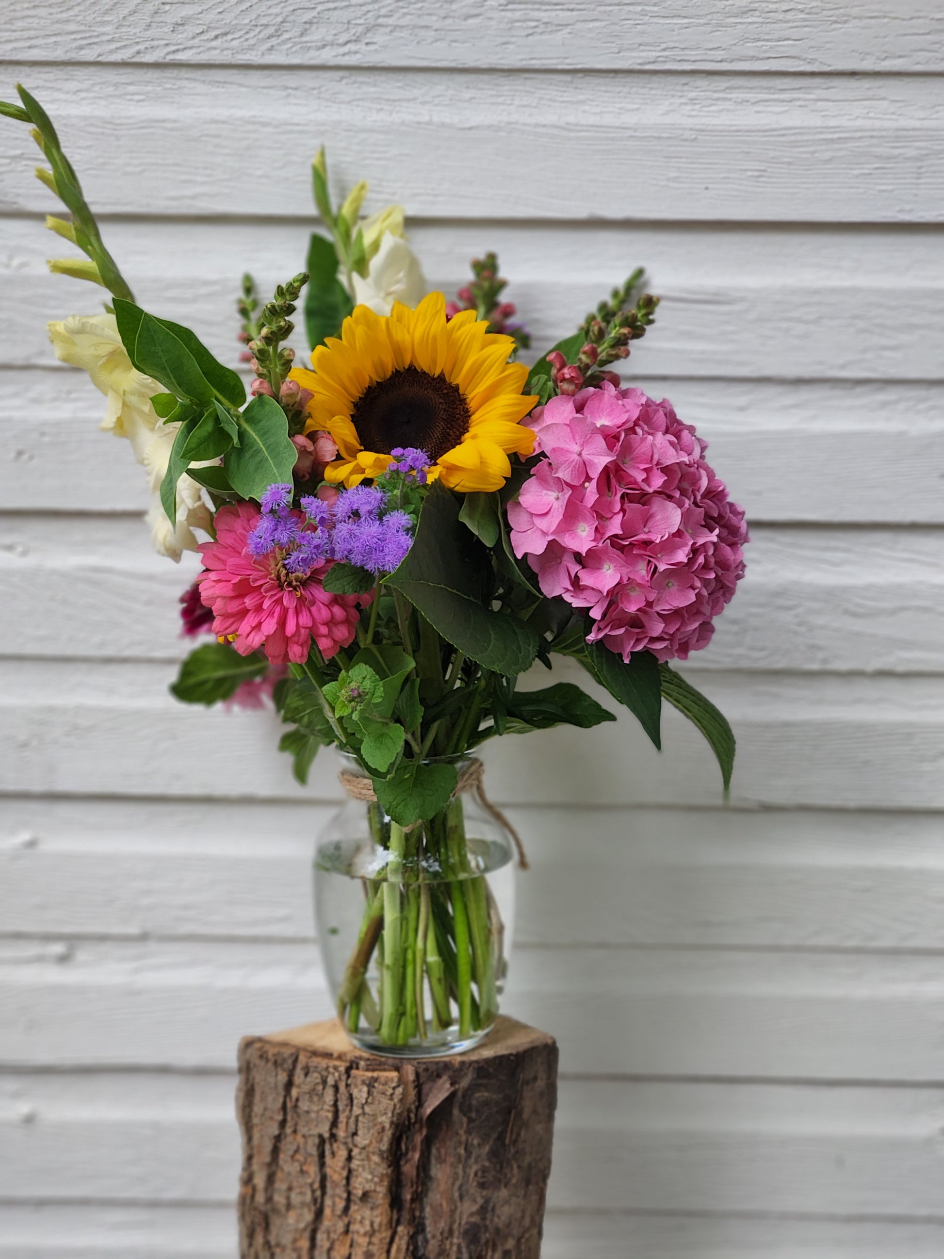 Our 4 Week Summer Bouquet Subscription will run in July, for a total of 4 bouquets. These bouquets will be made up of any flowers that may be blooming at the time. They will contain roughly 12-15 stems and will fit nicely in a mason jar or similar size vase.